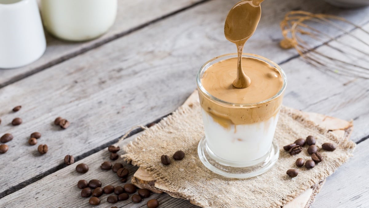 The success of Dalgona largely comes from its unique textural play: a whipped coffee foam, dense and glossy, perched on a bed of plant-based milk. So while the traditional recipe favors dairy milk, the vegan version today stands as a tasty alternative. The trick lies in choosing the plant-based beverage that will preserve the foamy texture of the milk, while also pairing wonderfully with the flavors of coffee.